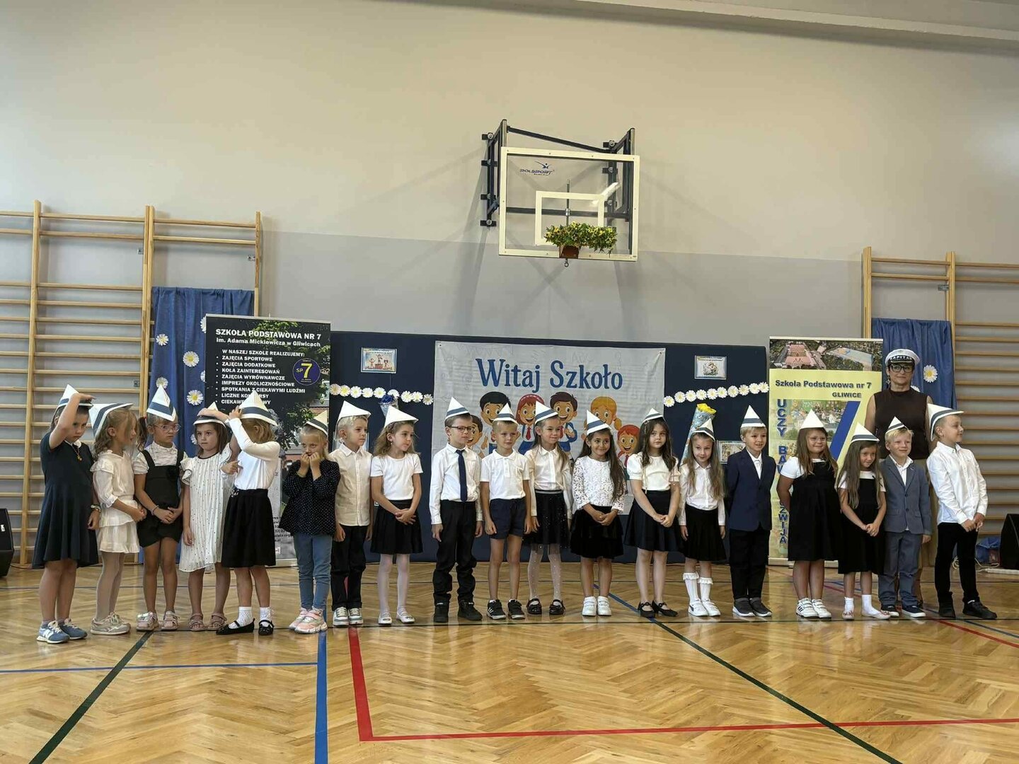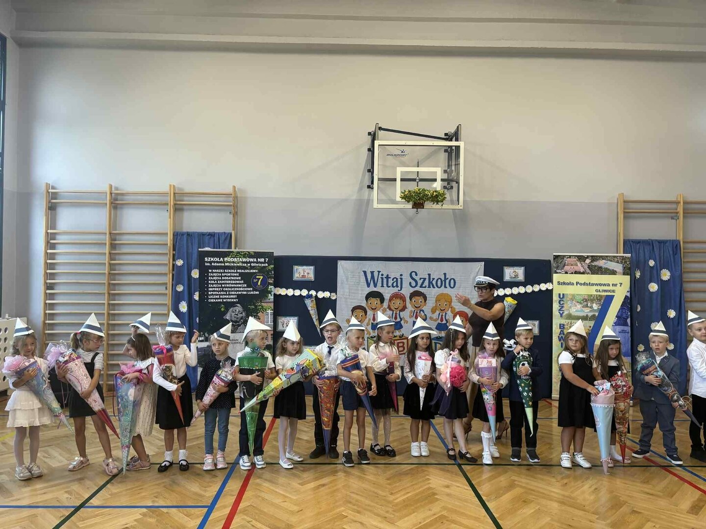 Tradycyjnie Pierwszoklasiści z rogami obfitości wzięli udział w uroczystości Rozpoczęcia Roku Szkolnego, na której zostali pasowani na ucznia 1 klasy przez Dyrekcję.