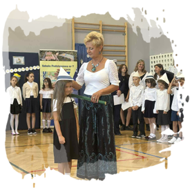 Na koniec uroczystości Pani Dyrektor złożyła życzenia wszystkim pracownikom szkoły i przybyłym emerytom pracującym niegdyś w SP7.